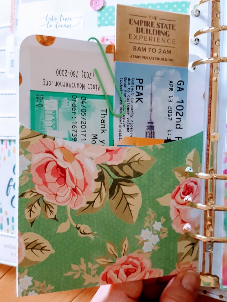 I had a small pocket for my Journal Card, but the holes didn’t line up. Solution, cover with coordinating designer paper and punch new holes.