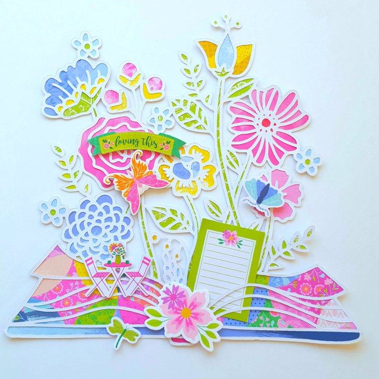 It’s a gorgeous mix of rainbow colours with travel and garden inspired ephemera. As always Paige’s collections are very versatile.  I’ve used it this week with a brand new cut-file by Paige, gifted in her first New’s Letter. Be sure to sign up!