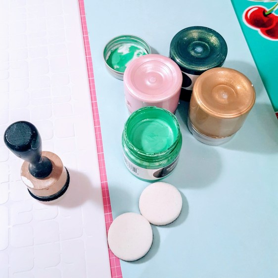 I chose Prima Opal Magic paints for this project. Once dry, the unique two-tone iridescent effect changes tone when viewed from different angles. I really love the sheen and super smooth consistency of these paints. We have a rainbow of colours available at Treasured Memories.