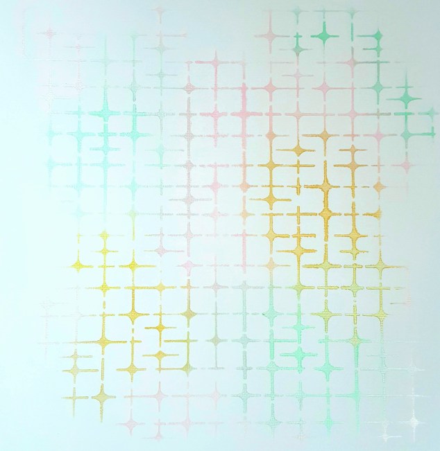 I like to tape my stencils down over my paper to ensure they don’t move before I finish.