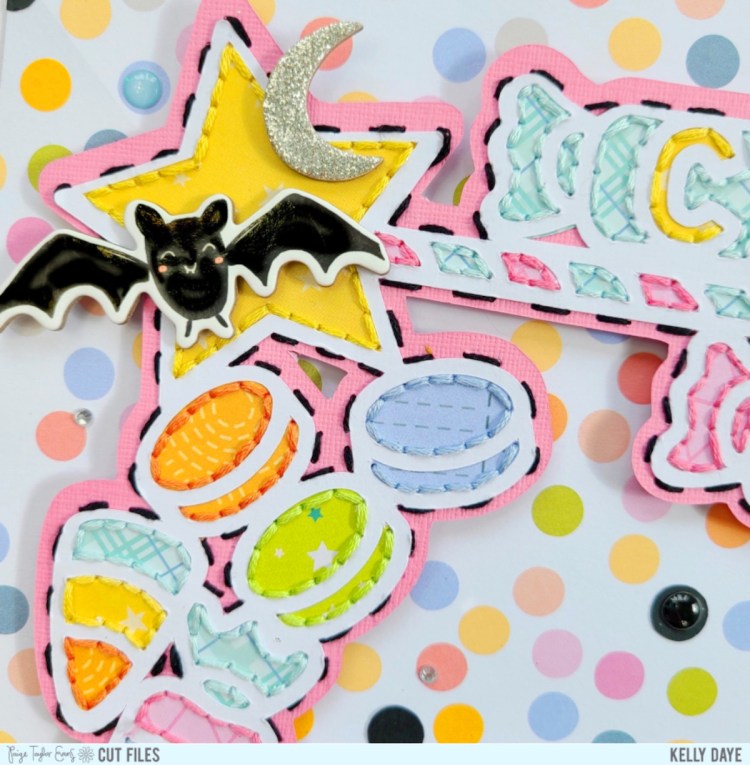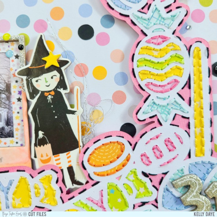 Hey hi friends! Welcome back to my little crafty corner. When you think of Halloween colours, are they orange, black, purple or green? That seems to be what paper companies want to serve up. But that’s not my game plan, I’m all about creating something unexpected! Truth, I’ve never been keen on traditional Halloween collections. So what a treat to imagine my design with colours I love, from a number of Paige’s fabulous collections. This cut file, called Candy, is found in this fab bundle, 13 Halloween Cut Files Bundle.