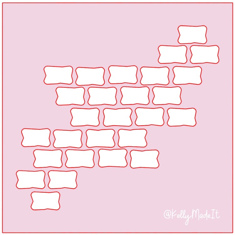 To finish the background, I stencilled a brick pattern in the corners using Distress Oxide Inks. I made my own stencil and offer it free for your own personal use. Click here to download it! It downloads an 8×8 inch stencil, you can up-size or minimize it to work on your own pretty projects. If you’d like the .SVG version, email me at Kellymadeit.wordpress@gmail.com and I’ll be happy to send it along (unfortunately, I can’t upload an .SVG to WordPress).