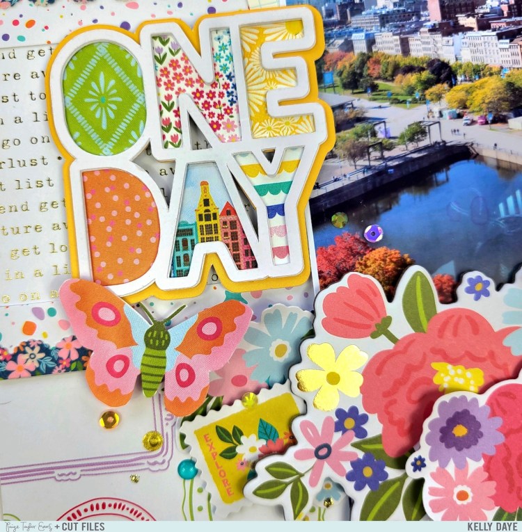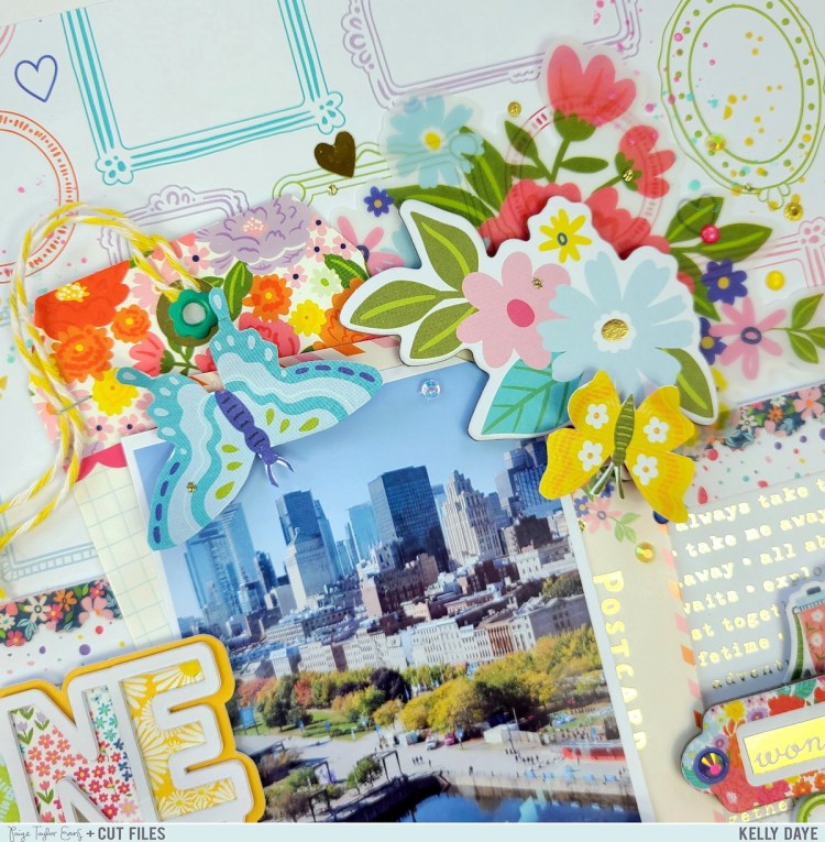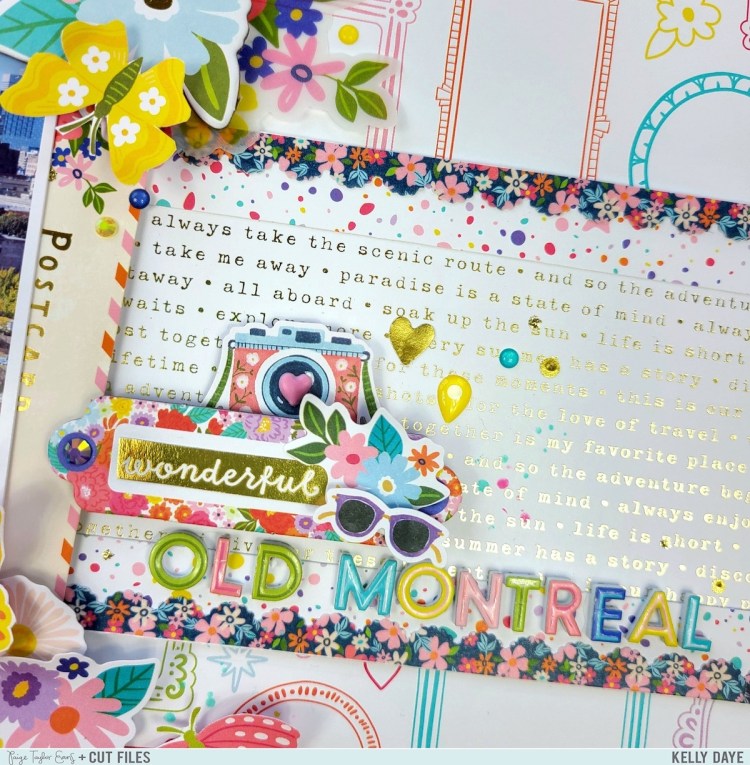 I took this photo from the top of a giant farris wheel on the lake front in Old Montreal. I’ve used Paige’s beautiful Adventurous collection! I also used part of her One Day At A Time cut file.