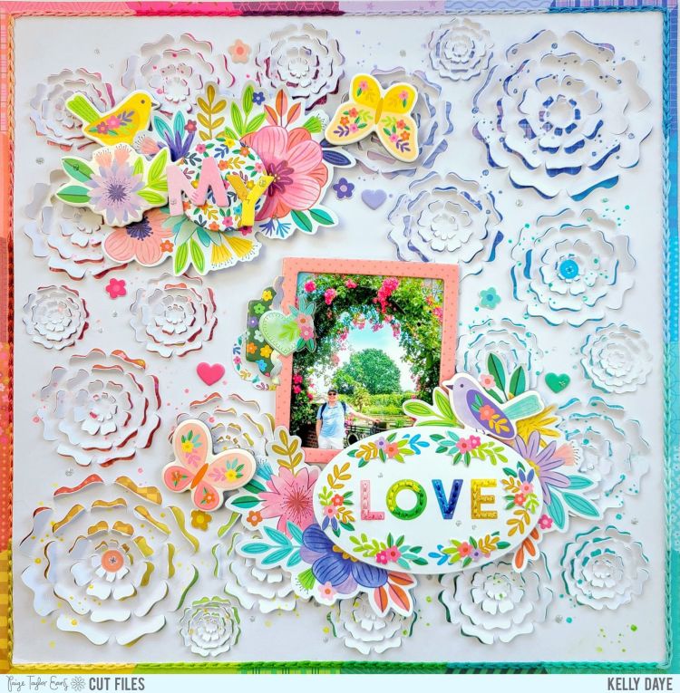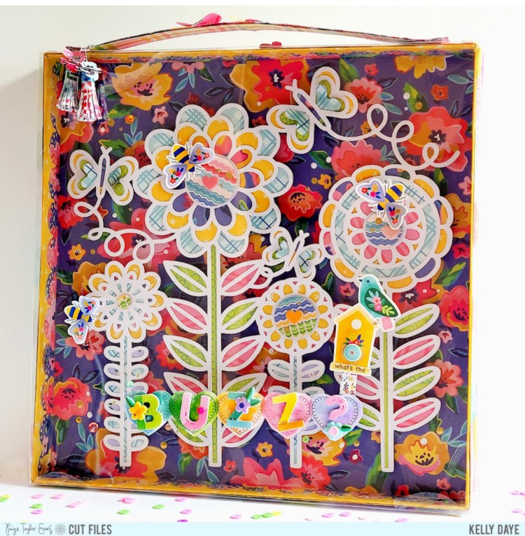 Hi friends, welcome back! I’m leaping off the page today with fun Shadow Box for my craft room. I’ve used Paige’s beautiful Blooming Wild collection and the 19 Days of Spring Cut Files Bundle. It’s like scrapping, times four. You get to decorate inside and outside, including the front, back, top and sides!